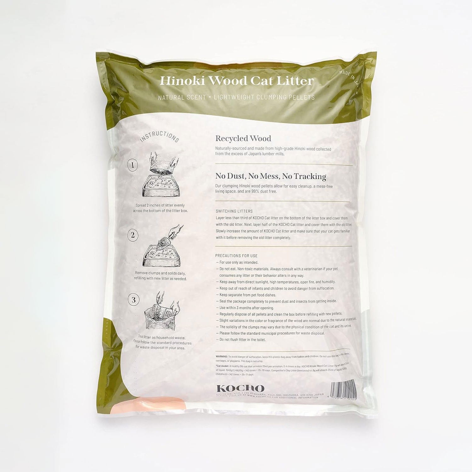 - No Dust, No Mess, No Tracking: Our clumping Hinoki wood pellets allow for easy cleanup, a mess-free living space, and are 99% dust free.